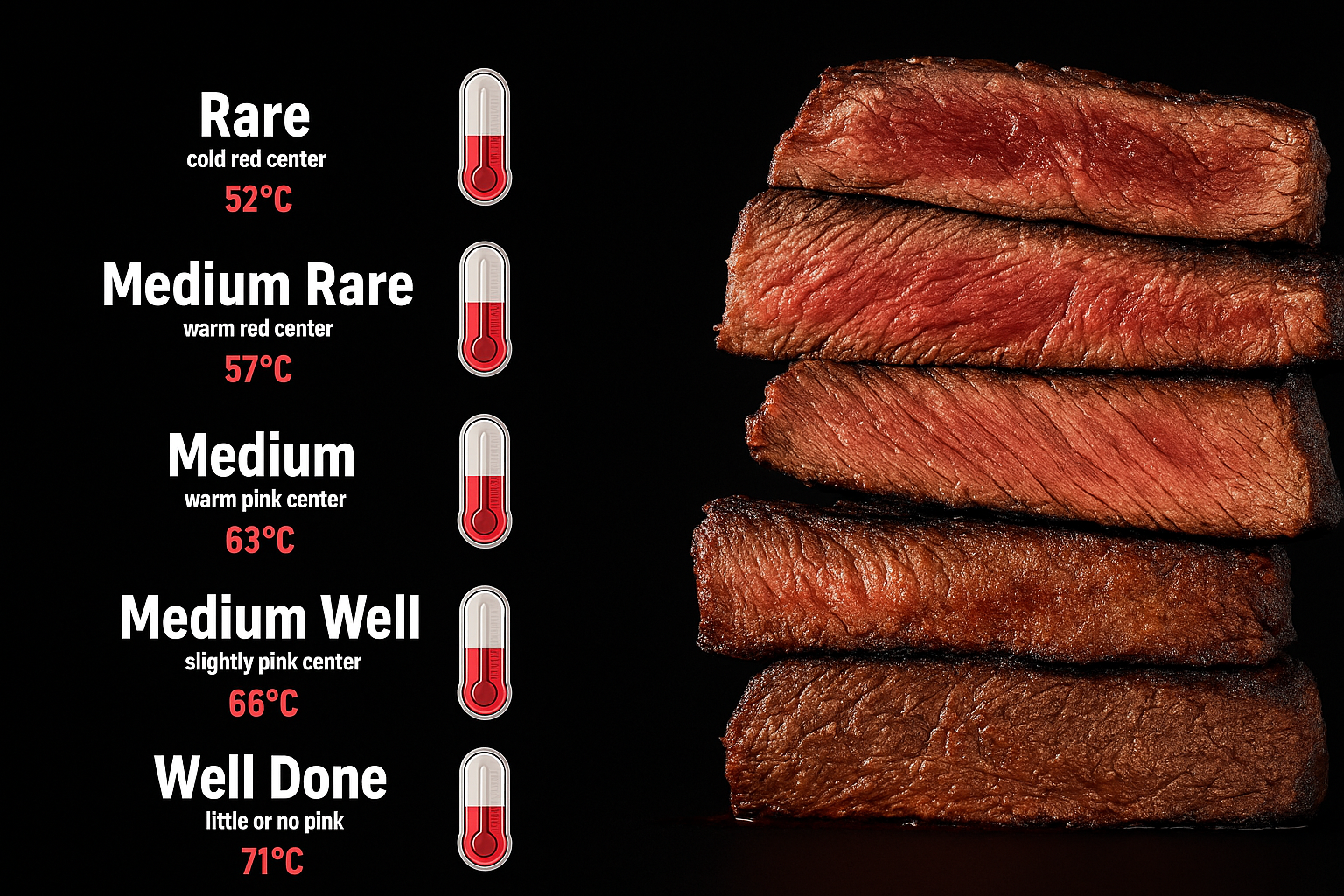 From rare to well done, each level tells a story of heat, flavor, and texture.